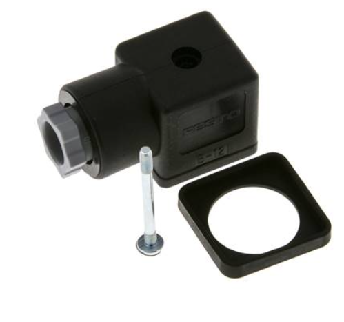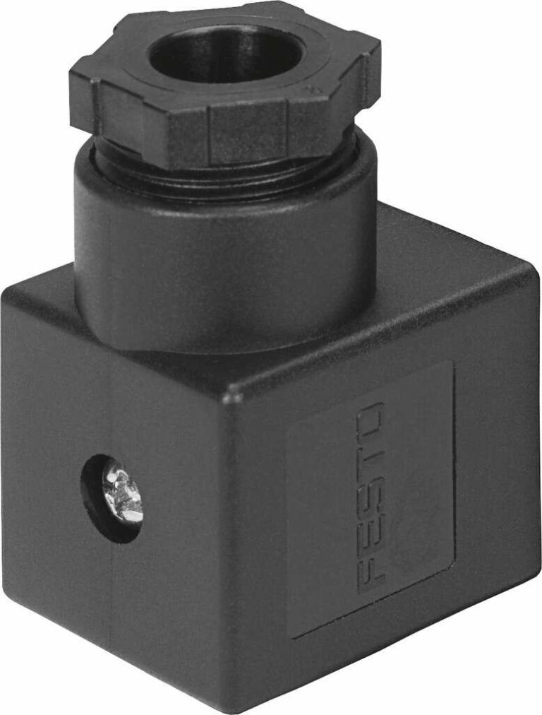 Il FESTO 34997 garantisce connessione affidabile tramite presa angolata a 2 pin e montaggio diretto sulla valvola solenoide con vite autofilettante.
