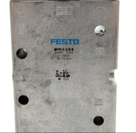 FESTO 14944 è una valvola elettropneumatica MVH-5/3G-3/8-B a 5 vie e 3 posizioni con posizione centrale chiusa per controllo preciso dei flussi d’aria compressa.